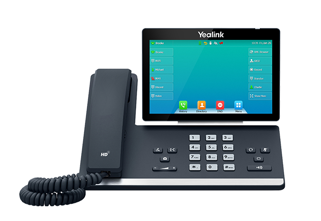 Especially designed for busy executives and professionals, Yealink SIP-T57W is an easy-to-use Prime Business Phone with an adjustable 7-inch multi-point touch screen that you can not only easily and flexibly find the comfortable viewing angle according to personal and environmental needs but also get a visual presentation and easy navigation with just one-touch. With built-in Bluetooth 4.2 and the built-in dual-band 2.4G/5G Wi-Fi, the SIP T57W IP Phone ensures you to keep up with modern wireless technology and take the first chance in the future wireless age. Its built-in USB 2.0 port allows for USB recording or a direct wired/wireless USB headset or up to three Yealink EXP50 expansion modules connection. Benefitting from these features, the Yealink SIP-T57W is a powerful and expandable office phone that delivers optimum desktop efficiency and productivity.